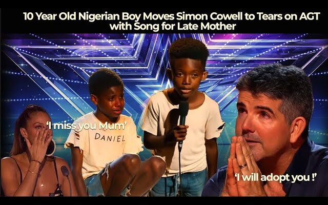 NEWS / PEOPLES10-Year-Old Nigerian Boy Moves Simon Cowell to Tears on AGT with Song July 16, 2025 - by BRO TOUCH - Leave a Comment Simon Cowell is moved to tears on AGT by a 10-year-old Nigerian boy’s song. Post Views: 405