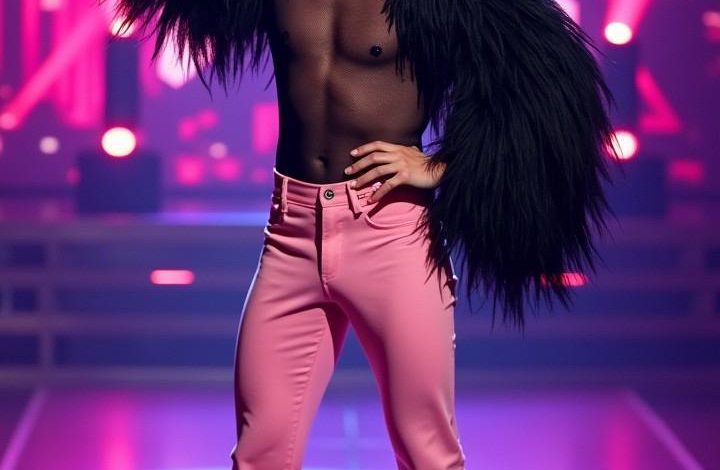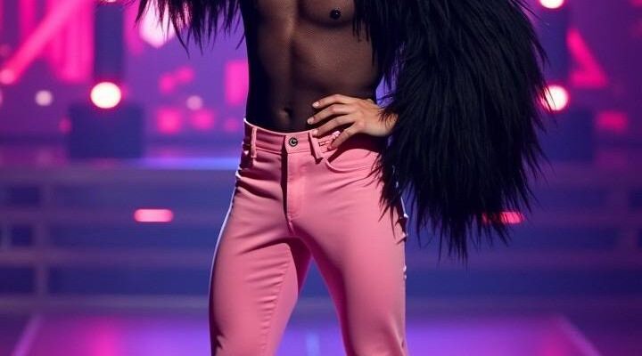 Wearing a sheer black top with dramatic feathered arms and flowing pink trousers, he strutted across the stage like it was Fashion Week. The moment he raised his arms and posed with unapologetic energy, the crowd erupted in cheers. Judges watched in awe as he served flair, choreography, and unapologetic authenticity.