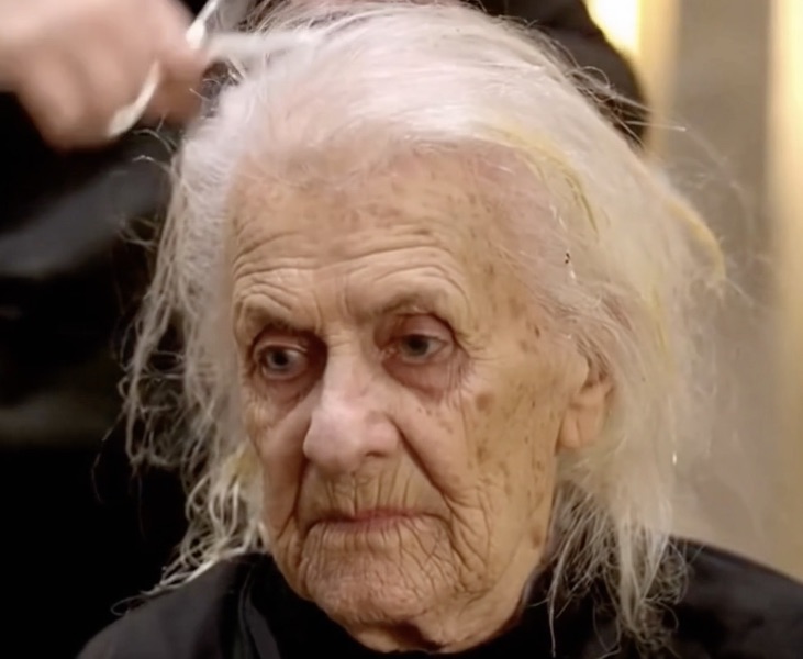 This elderly grandmother had deep wrinkles and had lived most of her life with the same hairstyle. Her hair, once vibrant, had grown thin and dull over the years, and she rarely changed it, feeling like it was too late to try something new.