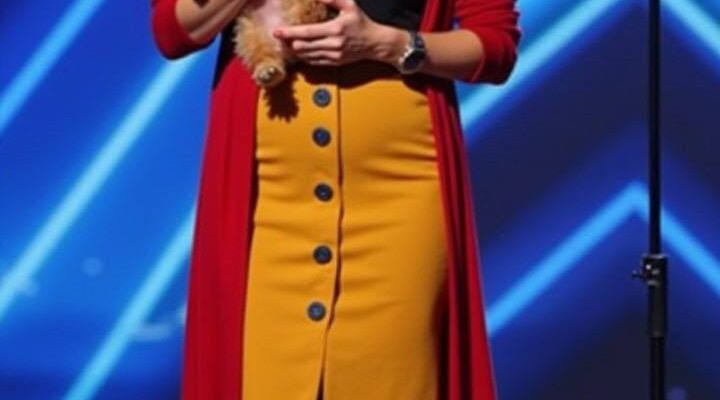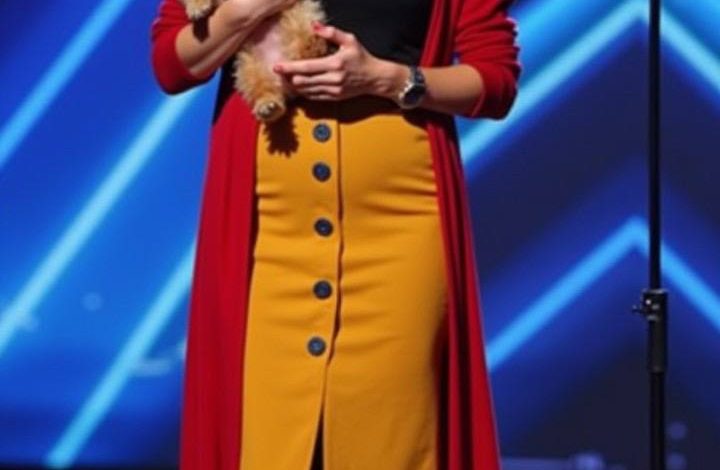 America’s Got Talent has seen its fair share of unique acts, but Pam and her dog Casper delivered something completely original. Walking onstage with a bright smile and her furry companion in her arms, Pam was ready to prove that music isn’t just for humans. Dressed in a vibrant red cardigan, mustard skirt, and sunny yellow flats, she exuded warmth before even singing a note.
