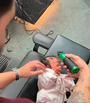 A few gentle strokes later, soft strands of baby hair began to fall. The baby squirmed, let out a tiny cry, and reached out instinctively. The parent leaned in quickly, offering a comforting touch and a calm voice that only love can provide.